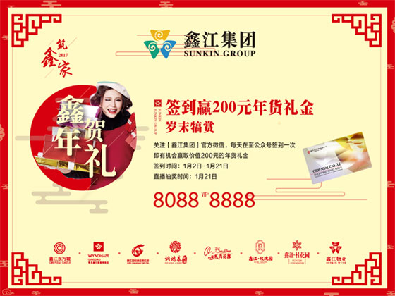 From 1st Jan to 12th Jan, participants who upload their target for this New Year to Sunkin Group on Wechat will obtain the New Year gift package. Meanwhile, reposting articles of Qingdao Oriental Castle on Wechat from 21st until 27th Jan will also gain you a gift package.