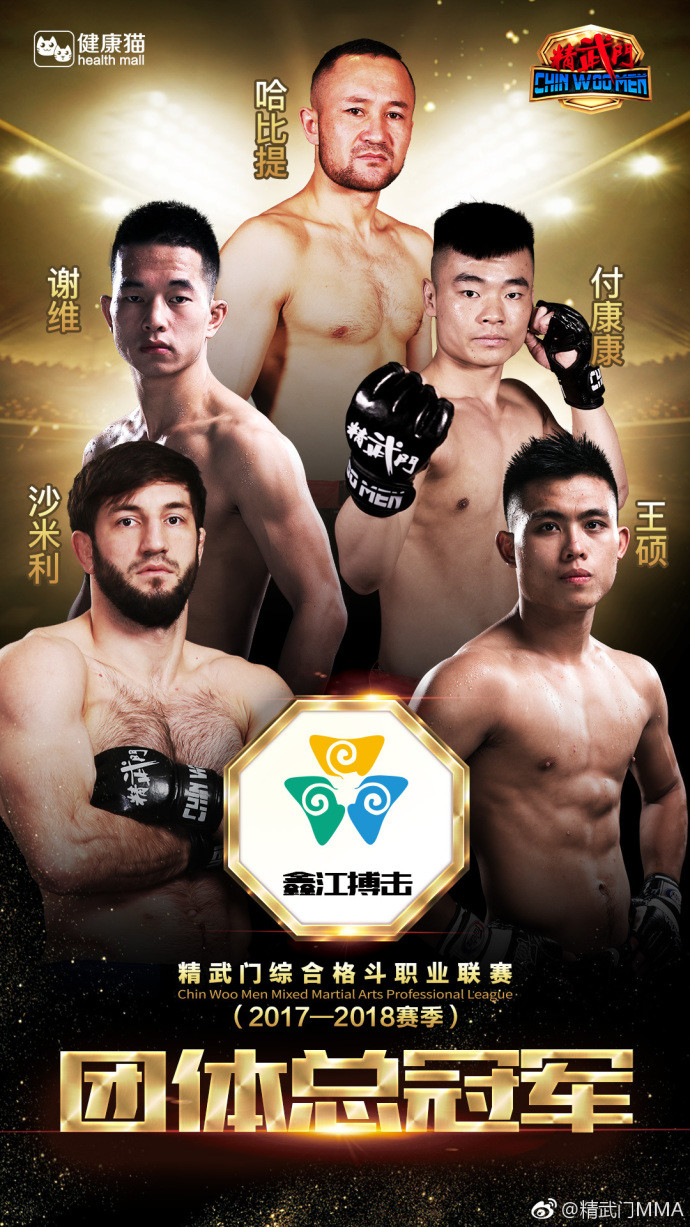 鑫江搏擊力克鑫度武術(shù)成功問(wèn)鼎,摘得精武門(mén)綜合格斗職業(yè)聯(lián)賽(2017-2018賽季)第二屆團(tuán)體冠軍!