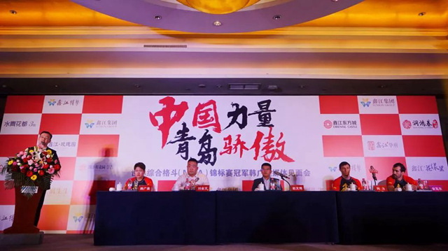 媒體提問(wèn)環(huán)節(jié),首先由鑫江集團(tuán)副總經(jīng)理趙文博,向記者詳細(xì)解答了鑫江集團(tuán)在體育文化事業(yè)上的發(fā)展理念。他表示:鑫江集團(tuán)作為青島本土企業(yè),深耕青島24年,目前已形成了集房地產(chǎn)開發(fā)、商業(yè)開發(fā)運(yùn)營(yíng)、珠寶、金融、體育文化、公共事業(yè)7大板塊于一體的多元化集團(tuán)企業(yè)。2018年集團(tuán)年銷售產(chǎn)值101億元,上繳稅費(fèi)7.03億元。鑫江搏擊俱樂(lè)部是集團(tuán)體育文化板塊的重要組成部分,韓廣美代表國(guó)家隊(duì)獲得世界綜合格斗錦標(biāo)賽冠軍,不僅是鑫江集團(tuán)的榮譽(yù),更是每一位國(guó)人的榮譽(yù)。鑫江集團(tuán)的每一個(gè)業(yè)務(wù)板塊在今后的發(fā)展中,都應(yīng)像韓廣美一樣展現(xiàn)出拼搏、奮斗的精氣神,為青島,為每一位選擇鑫江的客戶交一份滿意的答卷。