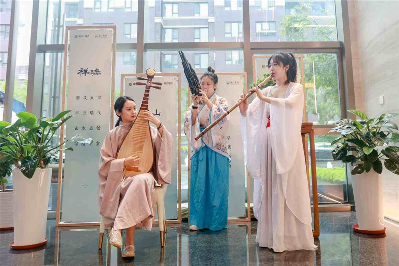 開放活動現(xiàn)場,一陣陣撩人心弦的琴聲引眾多人駐足,優(yōu)雅古典的音樂與傳統(tǒng)舞蹈表演,那身韻合一的搖曳身姿,與此景融為一體,仿若穿越到古時。而“禮樂”正是中國禮制文化的重要組成部分,通過“禮”教與“樂”教,形成了中國古代完善的禮樂制度。鑫江·瑞府再現(xiàn)“禮樂”盛景,古箏、琵琶、笙、簫、古琴、傳統(tǒng)舞蹈,于自然之中完美演繹,用最詩意的方式,開啟了一場中式美學的賞鑒之旅。