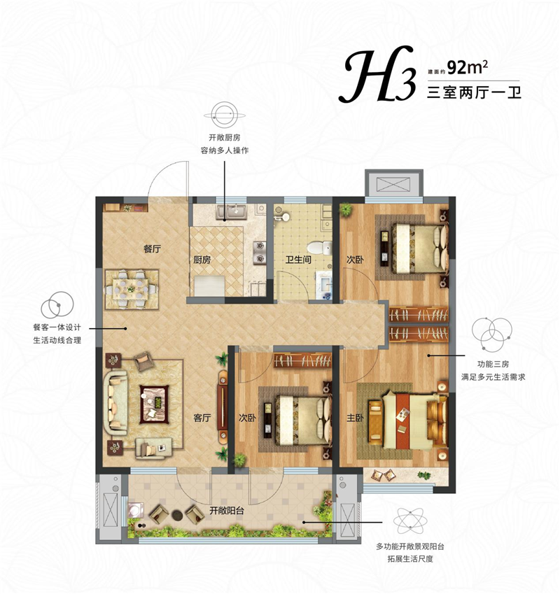 鑫江·花漾里建面約85-118㎡三維HOME家,精研空間的更多應(yīng)用可能,讓家庭生活更加融洽和親密。
