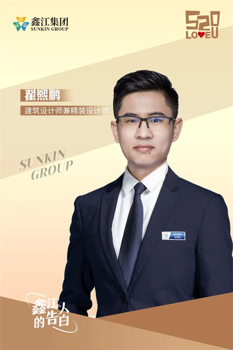 翟熙鵬,建筑設計師兼精裝設計師,堅持鑫江集團對精工質量的要求,也承載著你對美好生活的向往,它理應優(yōu)雅而溫馨。鑫江人在為你構筑理想家的路上從未止步,時刻用行動訴說愛意。