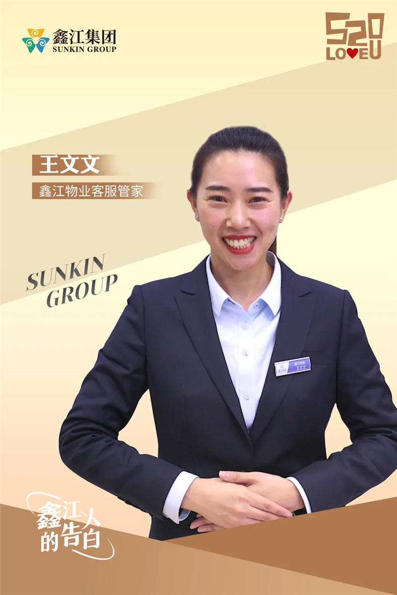 鑫江物業(yè)客服管家王文文,始終堅持鑫江物業(yè)“您的滿意是我們永恒的追求”的服務宗旨,把對你的愛,藏在了一個個故事里,藏在了一雙雙勤勞的雙手里。每一次溫情的付出,都是心的交匯,是愛的洪流?!@,是我們給你的溫柔的愛。