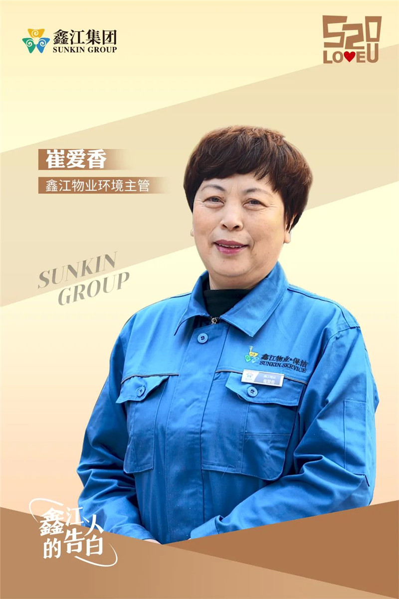 年復一年,日復一日,鑫江物業(yè)保潔主管崔愛香的工作雖然簡單,但簡單的事情重復做,重復的事情用心做,鑫江人希望在你的生活里,送去百分的潔凈,讓愛四季保鮮?!@,是我們給你的純潔的愛。